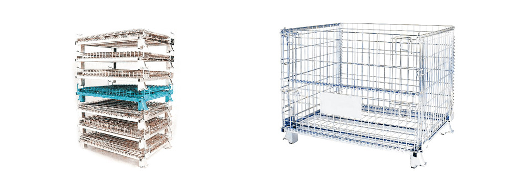 Disse kasser kommer i både faste og sammenklappelige designs og kan stables lodret for at optimere pladsen. Nogle modeller har faldporte for nem adgang, hjul til mobilitet eller galvaniserede overflader for korrosionsbestandighed.