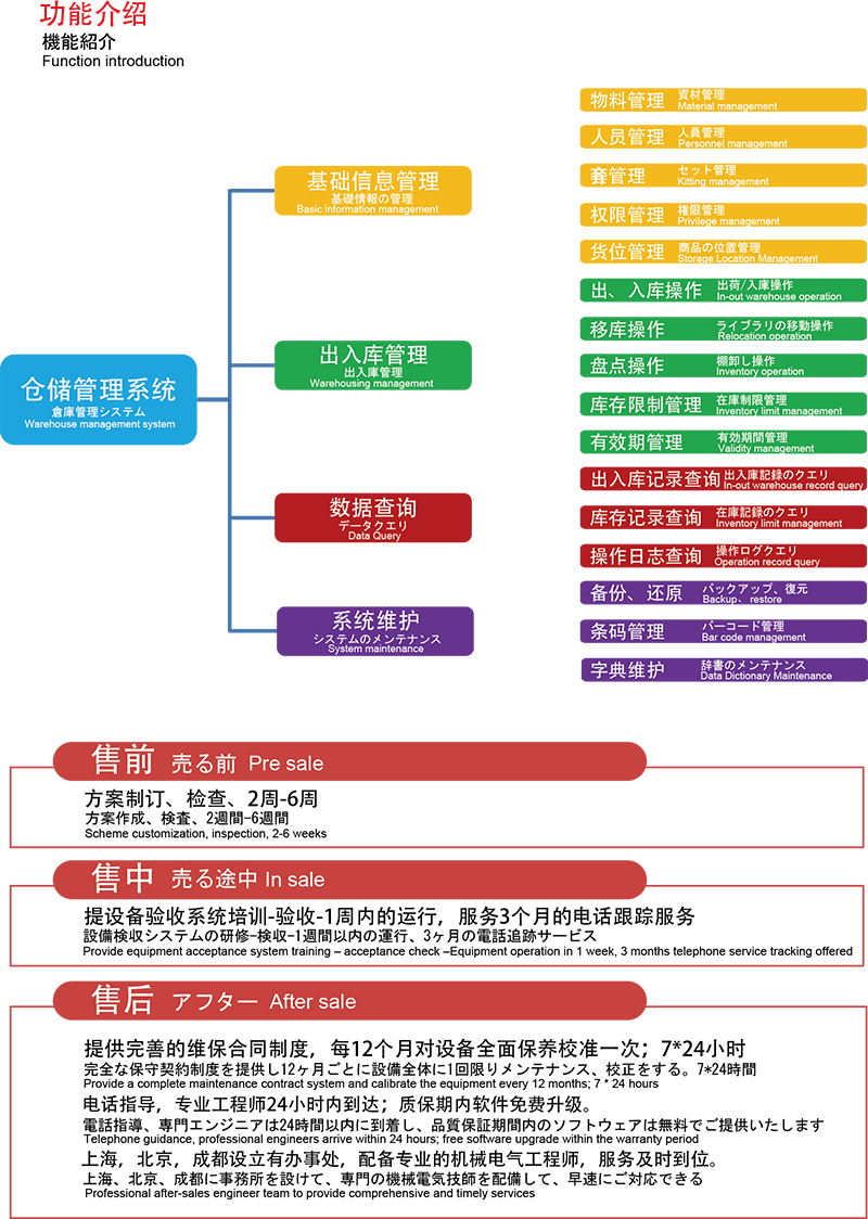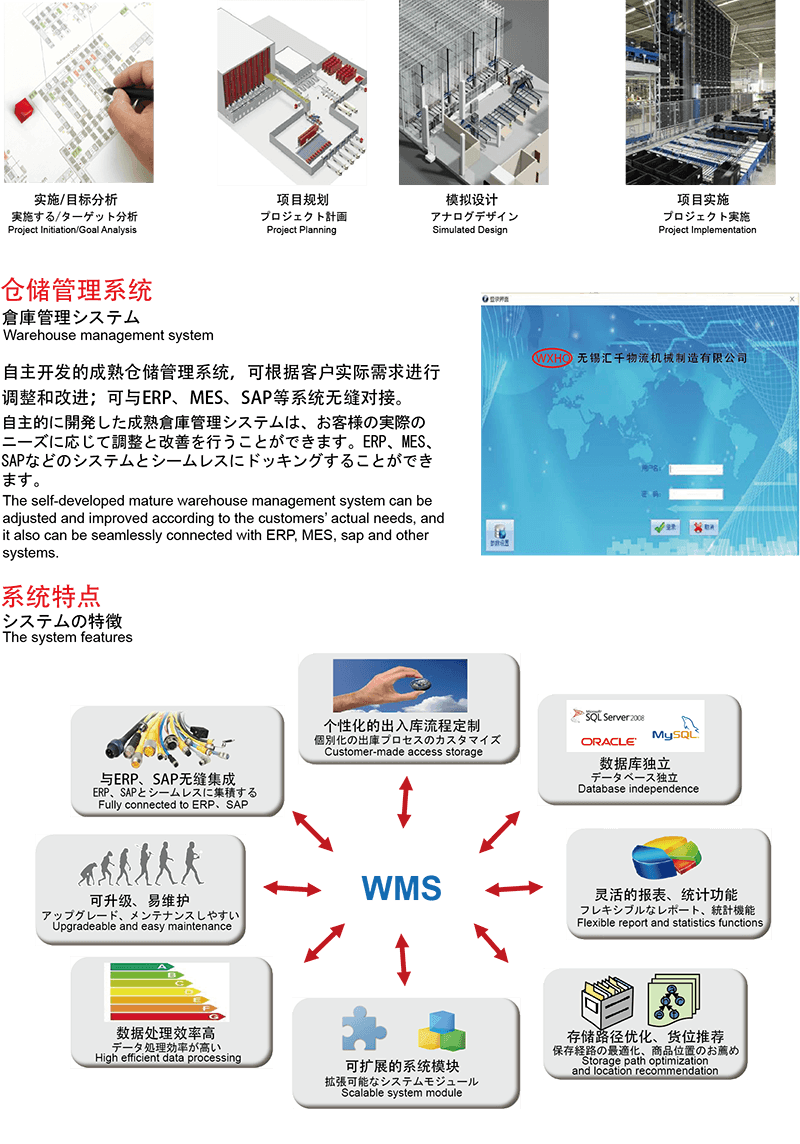 Det centrale i Wuxi Huiqians tilgang er dets Advanced Warehouse Management System (WMS), en fleksibel platform, der kan tilpasses til at imødekomme de specifikke behov hos hver kundes. Dette selvudviklede system integrerer problemfrit med ERP, MES, SAP og andre forretningsstyringsværktøjer, der giver mulighed for sporing af realtid, lagerstyring og forbedret datasynlighed. Ved at tilbyde modulære funktioner som in-and-out lagringsstyring, systemvedligeholdelse og dataforespørgselsfunktioner understøtter WMS virksomheder i at styre alt fra grundlæggende lagerfunktioner til mere komplekse logistikopgaver.