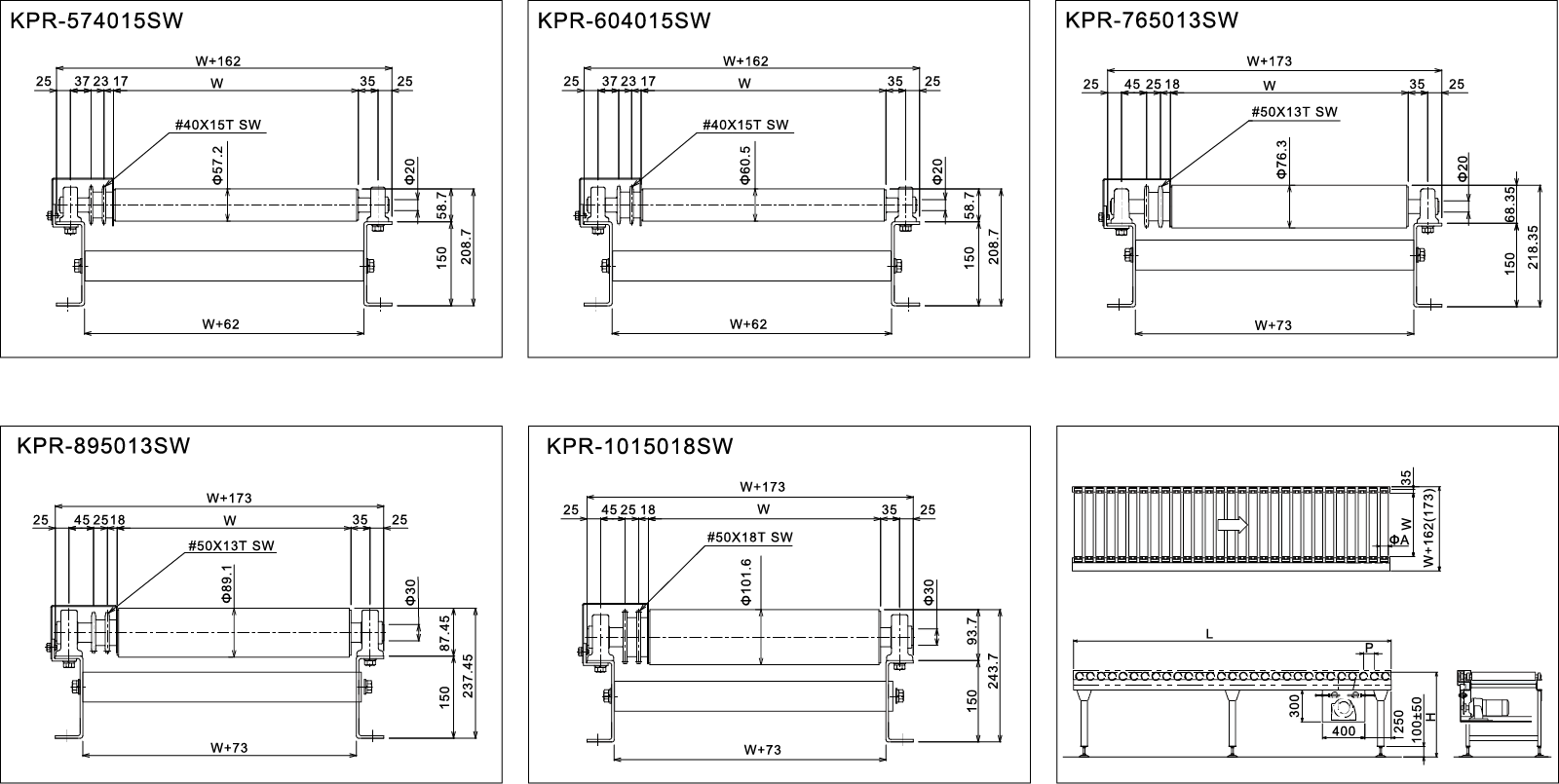 | Model | KPR-574015SW | KPR-604015SW | KPR-765013SW | KPR-895013SW | KPR-1015018SW | |