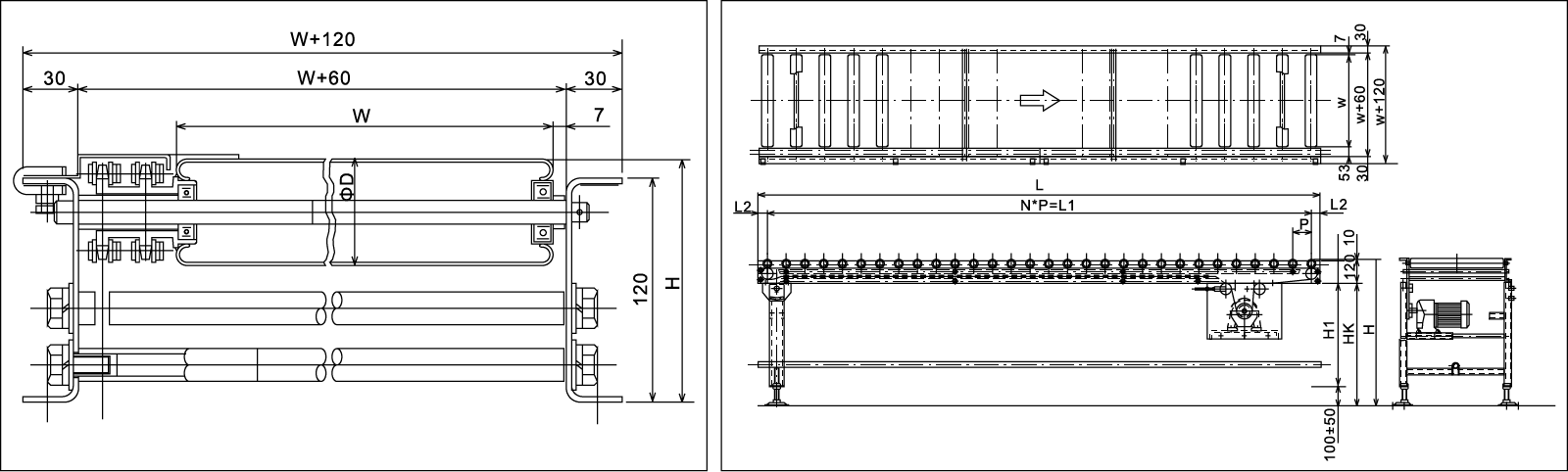 MAC-C-serie kædedrevne transportørruller ved hjælp af friktionskoblingstransmission, rulle og kæde kan have relativ bevægelse, for at holde varer stop, varer og ruller bør ikke have nogen friktion.