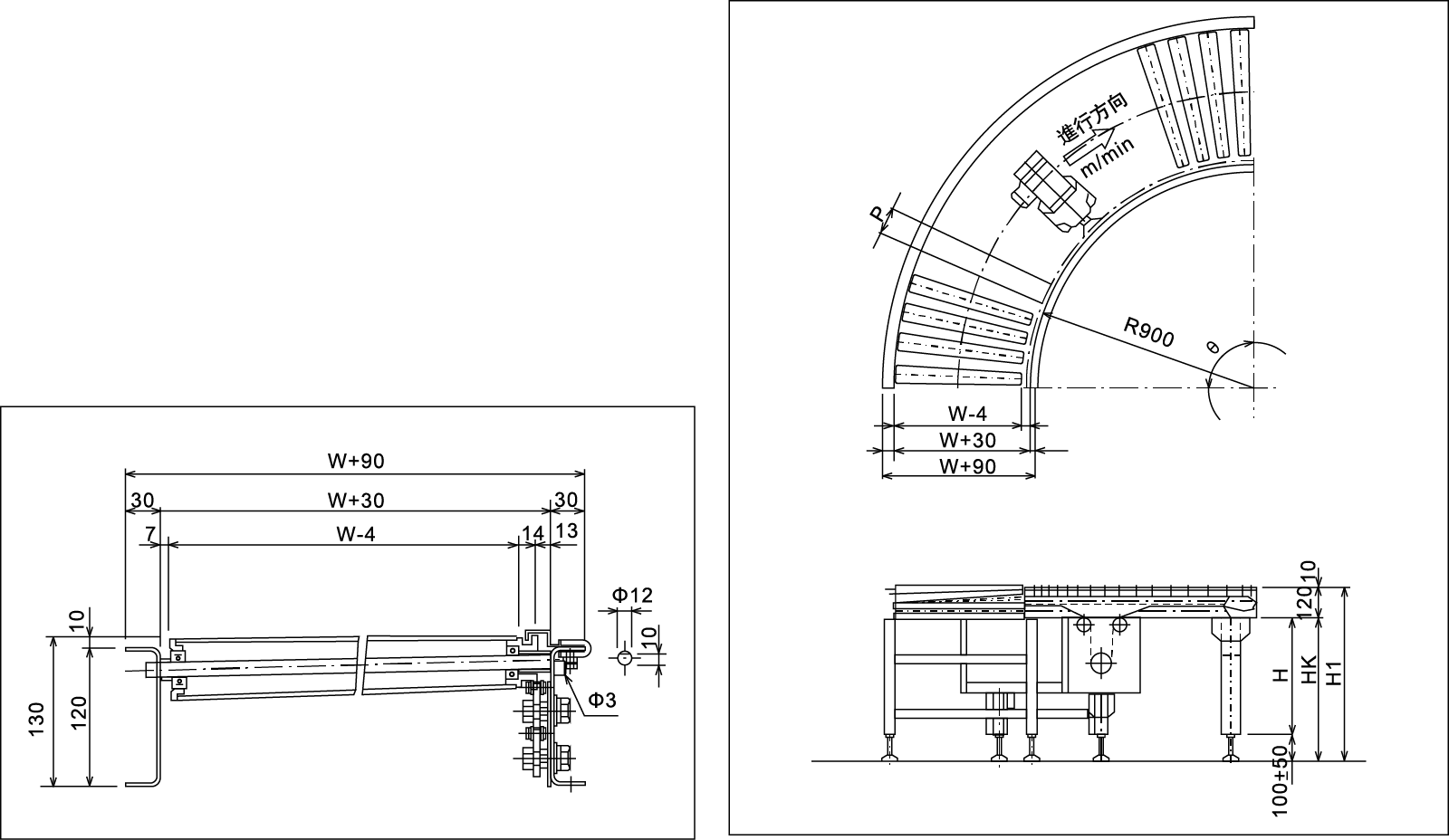 | Kædens bredde (W) | 400 ~ 1500 | 400 ~ 2000 |