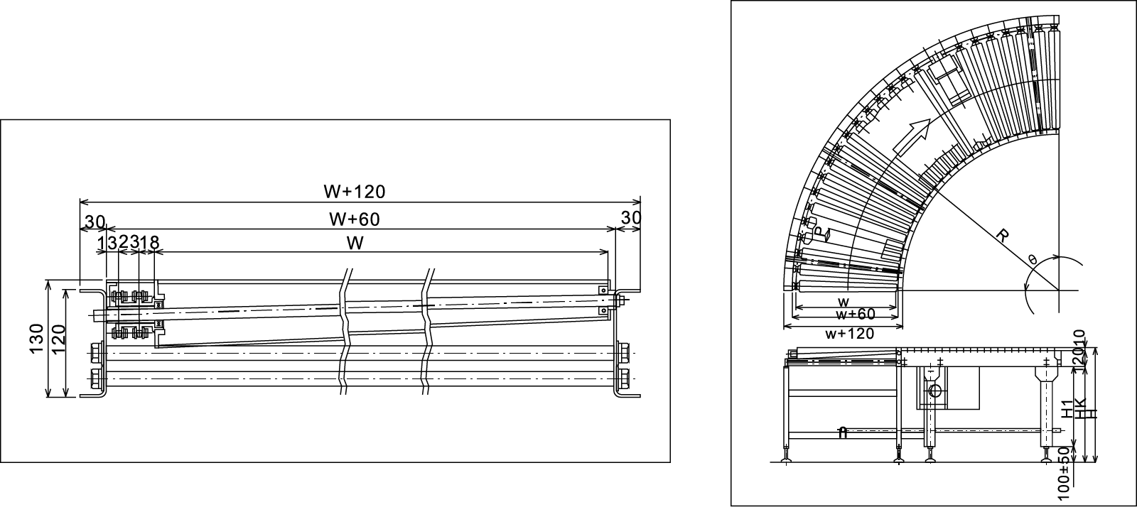 | Bredde af transportør | W 120 | W 120 | W 120 | W 120 | W 130 |