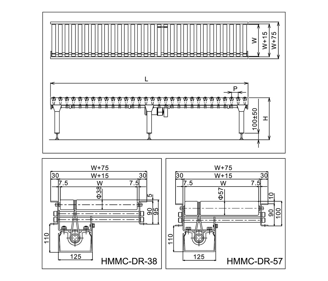| Rullehøjde s | 50、75、100、150 | 75、100、150 | 75、100、150 | 75、100、150 | 75、100、150 |