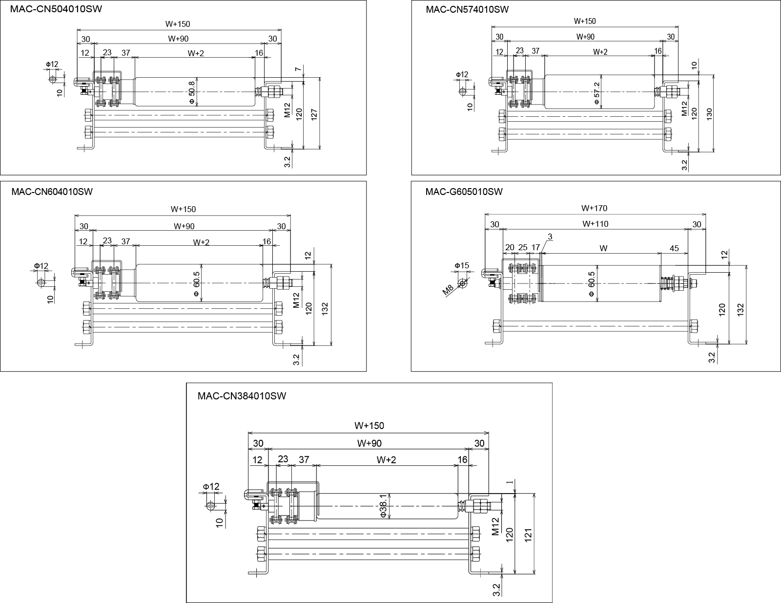 | Type | MAC-CN384010SW | MAC-CN504010SW | MAC-CN574010SW | MAC-CN604010SW | MAC-G605010SW |