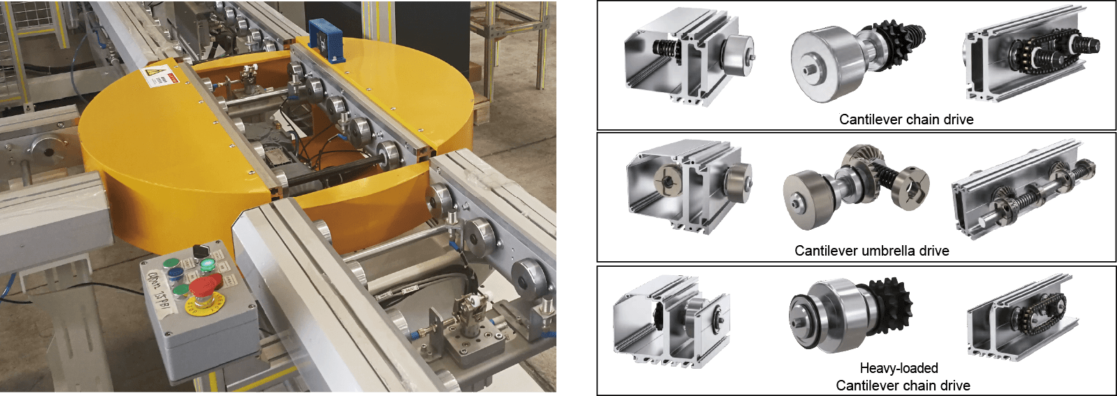 MAC-C-serie kædedrevne transportørruller ved hjælp af friktionskoblingstransmission, rulle og kæde kan have relativ bevægelse, for at holde varer stop, varer og ruller bør ikke have nogen friktion.
