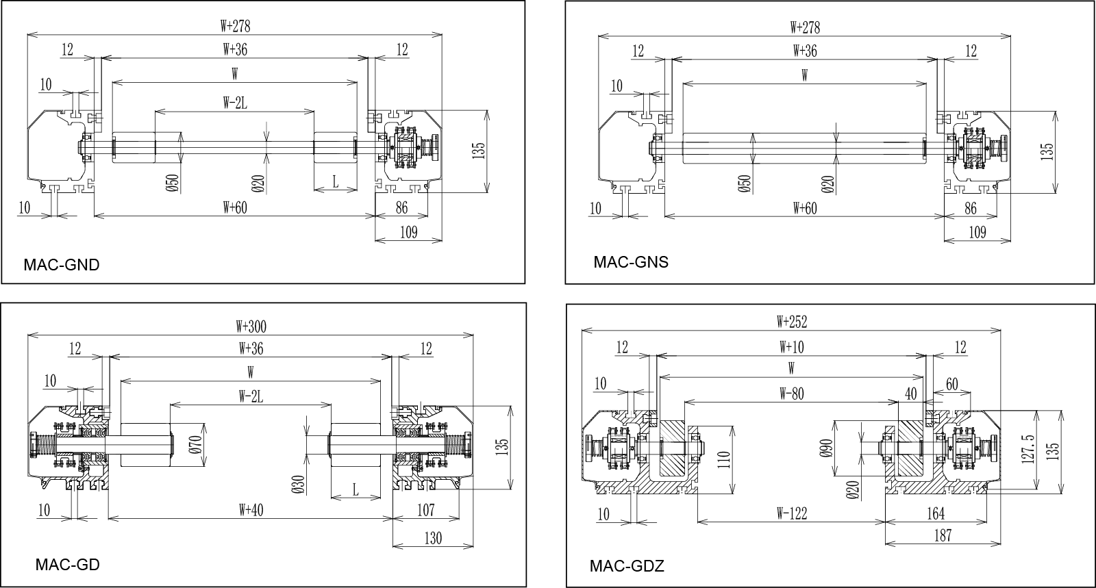 | Type | Mac-Gnd (kontinuerlig skafttype) | Mac-GNS (trommetype) | MAC-GD (cantilevered struktur) | Mac-GDZ (tung type) |