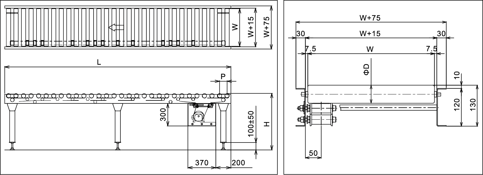 Også kendt som friktionssele-rulleoverførselsstransportøren drives det af et friktionsbælte og er velegnet til transport af lette, store størrelser som træplader, bølgepoller og sammensatte materialer. Det er enkelt, let at installere og vedligeholde.