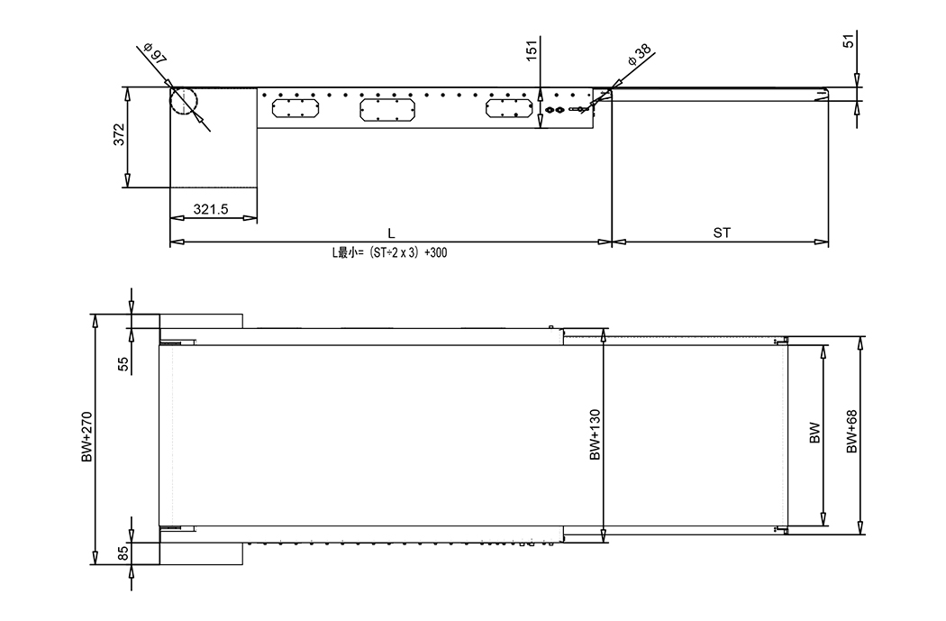 Den faktiske dimension af bæltet er indsnævret 5 mm end at abovere standardbælte; LF Længden af maskinen overstiger 4 m indsnævret 10 mm.