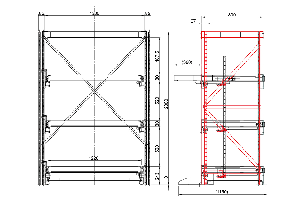 Medium case rack er velegnet til opbevaring af pint-størrelse varer, kassevarer eller specielle varer, der er mindre end 500 kg.
