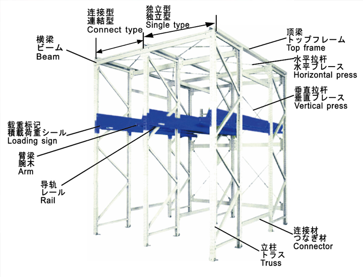 Forskellige guide kan installeres i henhold til tilsvarende gaffeltrucks, som kan reducere bredden af forbipasserende gang og udnytte pladsen.