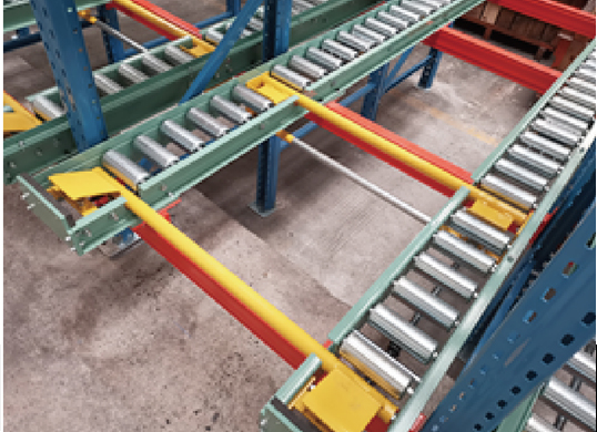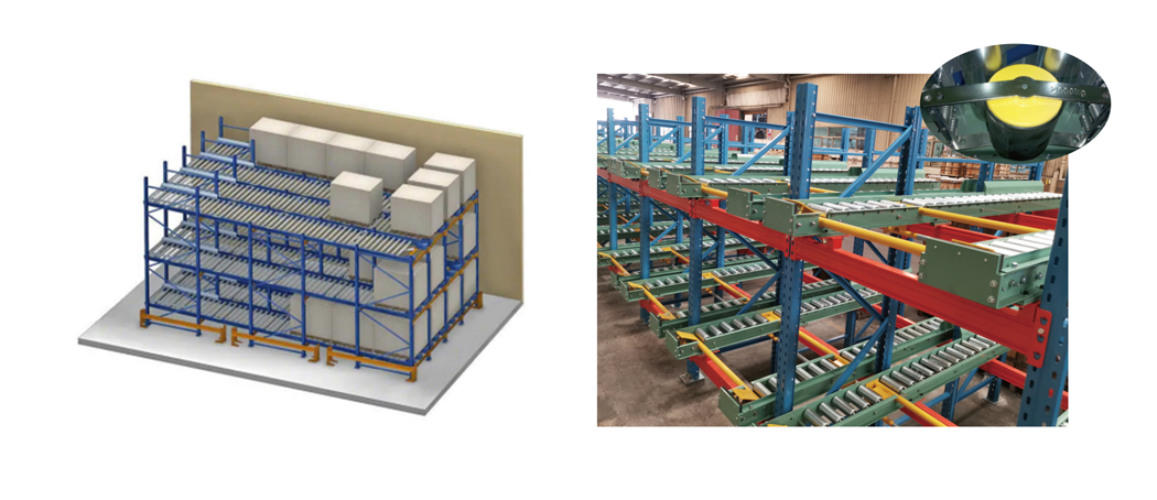 Hylder af tyngdekraftstypen og selvskydningsrullehylder har en struktur, der ligner hylder af stråletype, men ikke-drevne rullepor er installeret på bjælkerne i hylderne, og rullesporets hældningsvinkel er generelt 2-5 °. Tyngdekrafthylder bruger denne hældningsvinkel og vægterne selv til automatisk at glide fra højt til lavt. Tyngdekrafthylder er velegnede til produkter i, ud og høje strømningsprodukter. Deres vigtigste funktioner er høj pladsudnyttelse, og hylden kræver ikke ekstern energi. De er især velegnede til stor lagerstyring såsom koldopbevaring og logistikfordelingscentre og kan drives af almindelige afbalancerede gaffeltrucks.