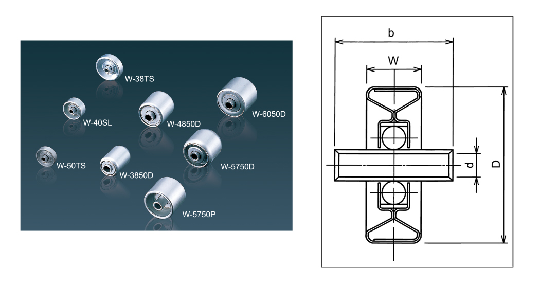 | Type | D*w*d*b | Aksel | Rammestørrelse H*W1*W2*W3*T. | Højde H | Længde L | Hjulbane S | ENKELT HJULSLOTING (kg) | Rammetype |